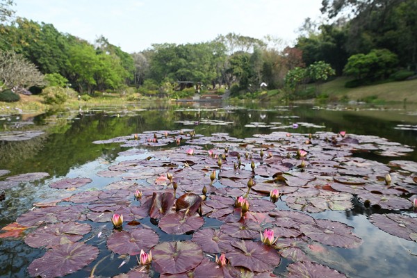 云溪植物园开辟占地面积两万多平方米的睡莲展示区,整体以塘、草、花三要素打造“莲香飘远、百花疏影、姹紫嫣红”的景观。在种质资源创新方面,云溪植物园成立了睡莲引种保育开发小组,积极联动国内高校和科研院所,初步构建起科学选育体系。