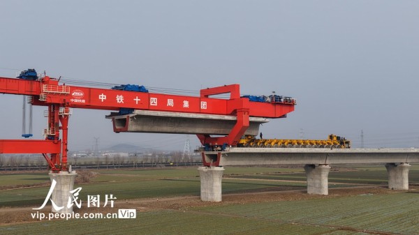 2026年1月31日,山东临沂潍宿高速铁路九标段箱梁架设施工现场一派繁忙,施工人员抢抓工期,全力推进工程建设。