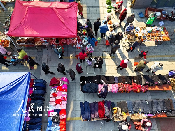 2026年2月8日,在江西赣江新区新祺周管理处邻里中心的周末集市上,各类年货琳琅满目,涵盖蔬菜水果、酱菜熟食、坚果炒货、日用百货等,前来选购的群众络绎不绝,年味浓郁。袁骏摄(人民图片网)