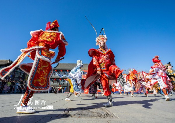 2026年2月24日,农历正月初八,呼和浩特新春文化庙会“游八仙”主题活动在内蒙古呼和浩特市玉泉区塞上老街区块精彩上演。高跷、秧歌、醒狮等汇聚南北民俗文化的表演,为市民和游客带来一场新春文化盛宴。丁根厚摄(人民图片网)