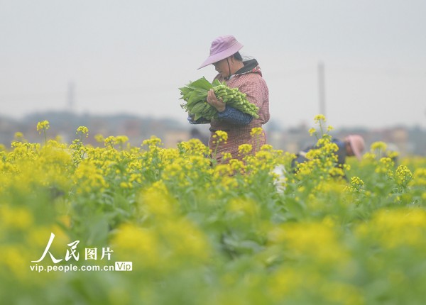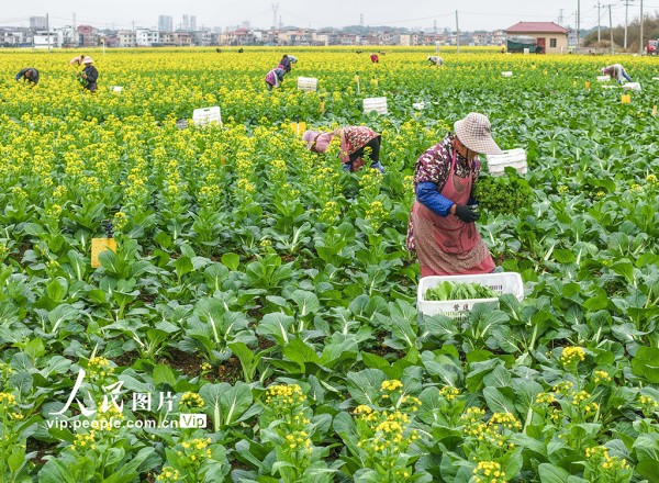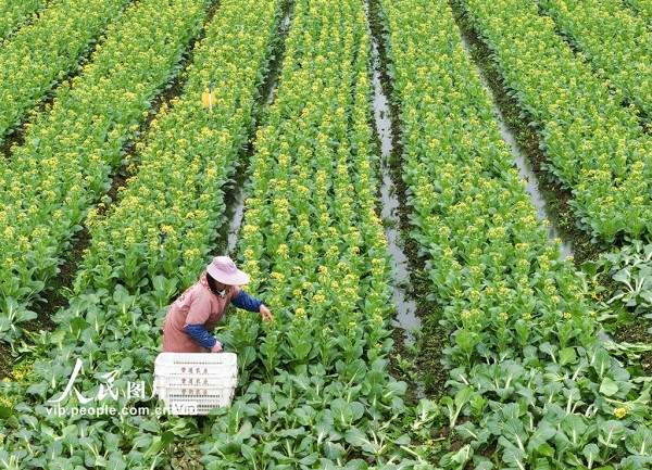 2026年2月28日,湖南永州道县清塘镇原地正禾农场蔬菜基地,农民正在采收蔬菜。蒋克青摄(人民图片网)