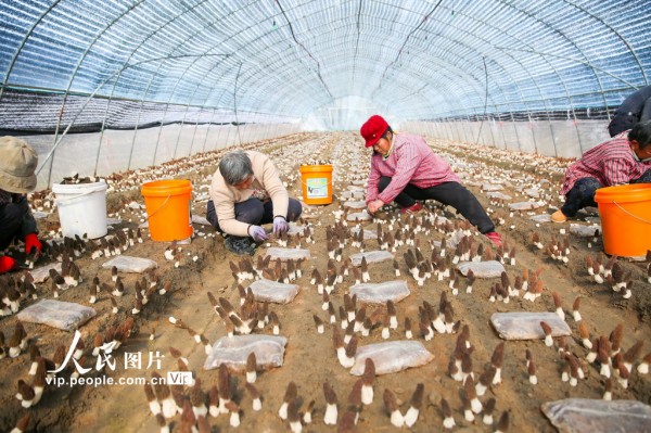 2026年3月7日,江苏省如皋市搬经镇羊肚菌种植基地迎来采收季,村民们抢抓农时,忙着采摘、分拣新鲜羊肚菌,供应市场。作为当地特色高效农业项目,羊肚菌种植既丰富农产品供给,又拓宽农户增收渠道,为乡村振兴注入强劲动力。徐慧摄(人民图片网)