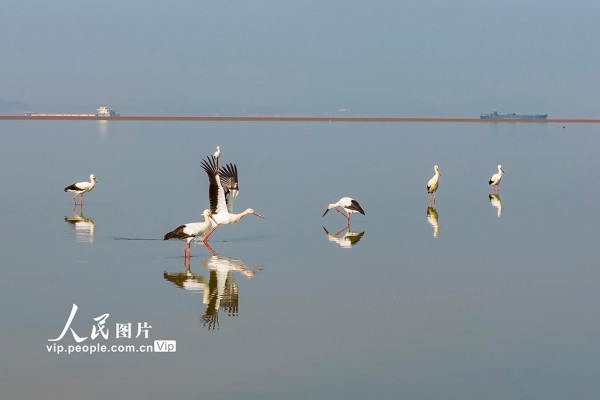 连日来,在鄱阳湖江西九江湖口县水域,大批越冬候鸟正集结北迁,构成春日湿地一道亮丽的风景线。鄱阳湖作为中国最大淡水湖与国际重要湿地,是候鸟迁徙路线上的关键越冬地与停歇地。每年11月底至12月初,大批候鸟飞抵鄱阳湖越冬,次年2月至3月陆续启程北迁。张玉摄(人民图片网)