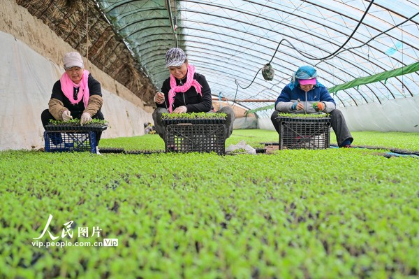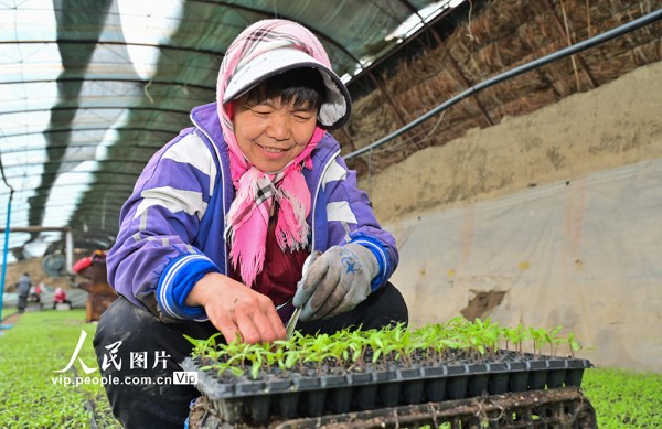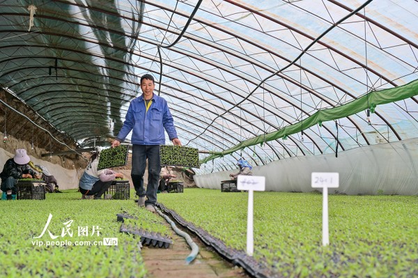该乡依托育苗大棚,推行“公司+农户”订单化生产模式,为春耕市场稳定供应优质种苗。陶维明摄(人民图片网)