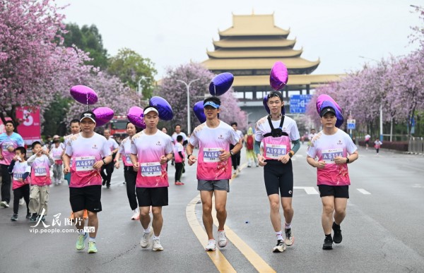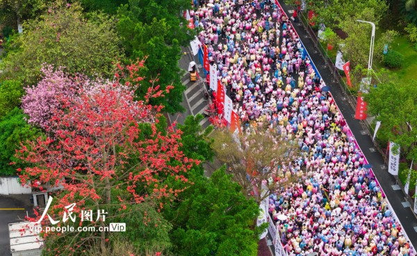 2026年3月28日,广西柳州市举办全民跑活动,来自全国各地的1.8万名跑者踏上开满洋紫荆花的沿江赛道。