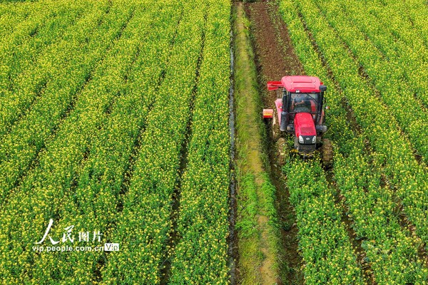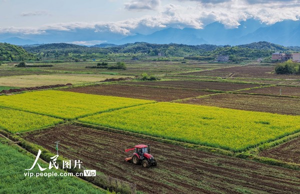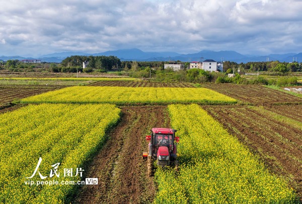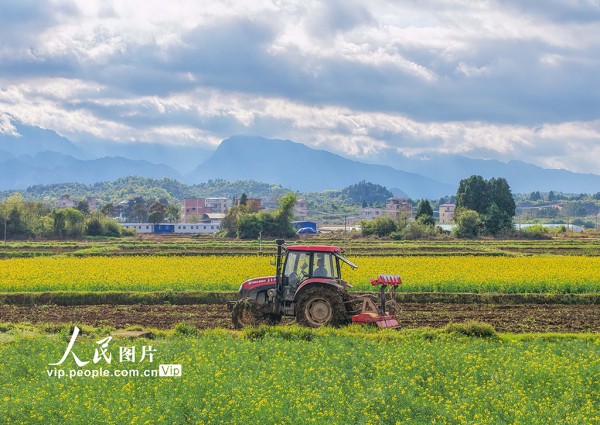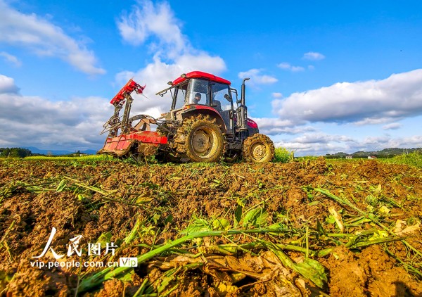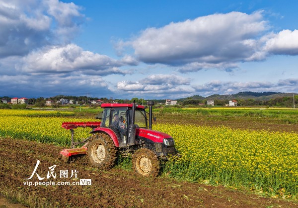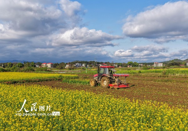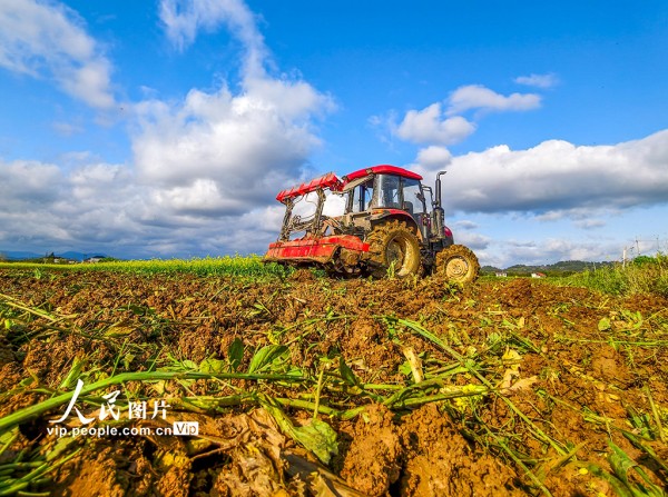 2026年3月31日,在湖南永州道县寿雁镇水源头村,农民正驾驶农机翻耕农田。蒋克青摄(人民图片网)