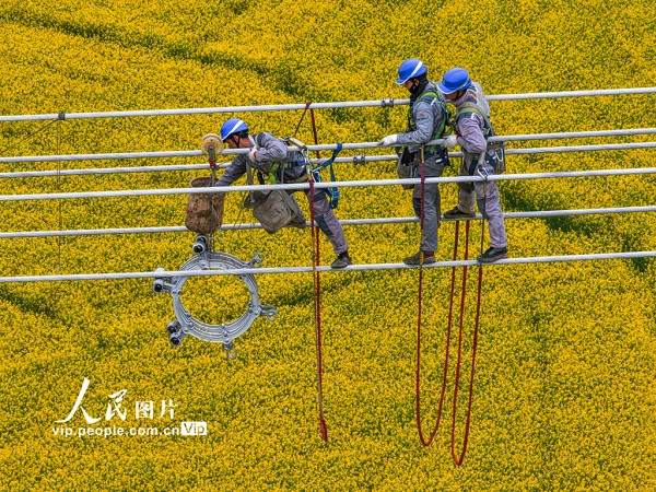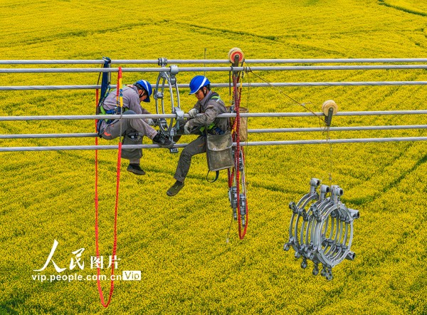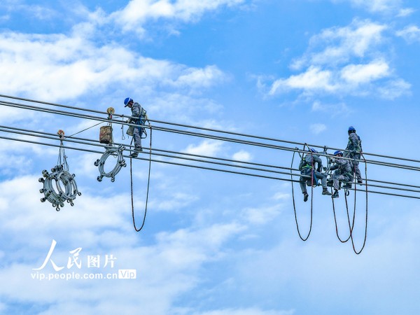 甘肃—浙江±800千伏特高压直流输电工程是国家“十四五”电力发展规划重点项目,起于甘肃武威,止于浙江绍兴,全长约2370公里。工程建成后,将有效促进西部“沙戈荒”大型清洁能源基地电力外送,缓解华东地区电力供需矛盾。鲁君元摄(人民图片网)