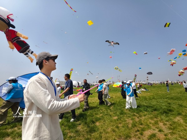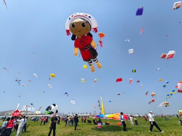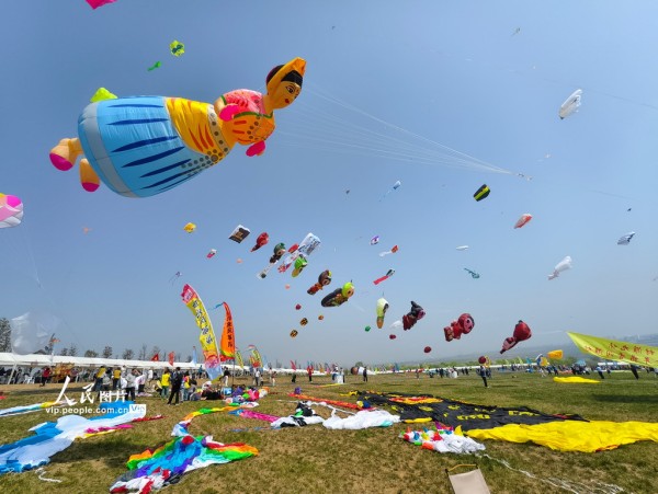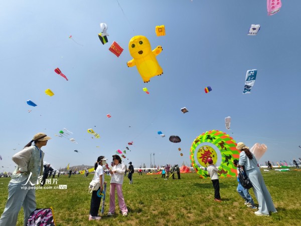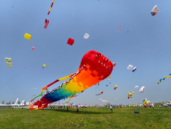 本届风筝会以“跃马山海行 奋进万亿城”为主题,来自海内外的风筝爱好者、游客与市民齐聚“世界风筝之都”,共赴一场延续千年的蓝天之约。冯粒摄(人民图片网)