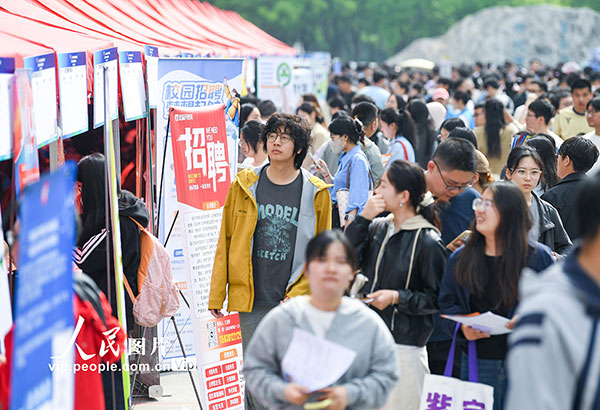 2026年4月19日,河北师范大学2026年春季大型双选会在该校四方广场举办。本次双选会作为“2026年全国城市联合招聘高校毕业生春季专场活动(石家庄站)暨驻石高校校园巡回招聘活动”的重要组成部分,吸引了全国20多个省市区的650余家优质用人单位参加,提供就业岗位2万余个。张晓峰摄(人民图片网)