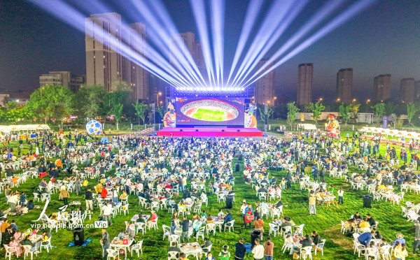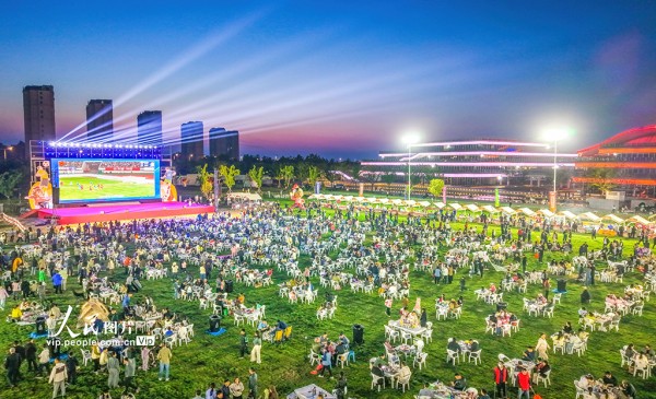 自“苏超”开赛以来,江苏省宿迁市以足球为媒,依托“第二现场”模式,深度融合观赛休闲与市井消费,通过特色场景打造、市集联动、消费券发放等多元举措,推动赛事热度转化为经济动能,持续激发夜间消费新活力。陈少帅摄(人民图片网)