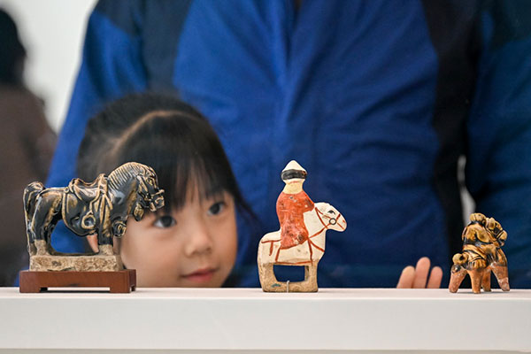 2月4日,“春风骐骥:马年生肖展”在上海博物馆人民广场馆启幕。展览甄选来自甘肃省博物馆、甘肃省文物考古研究所、咸阳博物院及上海博物馆馆藏的16件/组马主题文物,分为“鞍马征尘”“昭陵六骏”“骏影流光”“诗情画意”等板块,展现中华文化中“马”的多元内涵与吉祥寓意。展览将持续至3月17日。新华社记者 陈浩明 摄