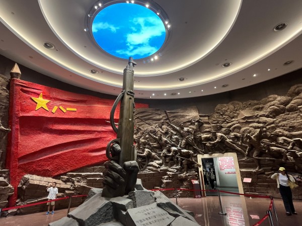 主持该馆工作的副馆长张江告诉我们,这组雕塑是2007年为庆祝建军80周年时安置的,因为形神兼具、主题突出,受到方方面面的好评,所以馆内几次改陈都保留了这组雕塑装置,至今仍然是深受观众喜爱的参观该馆的第一个展项,被媒体称为“一支枪”。