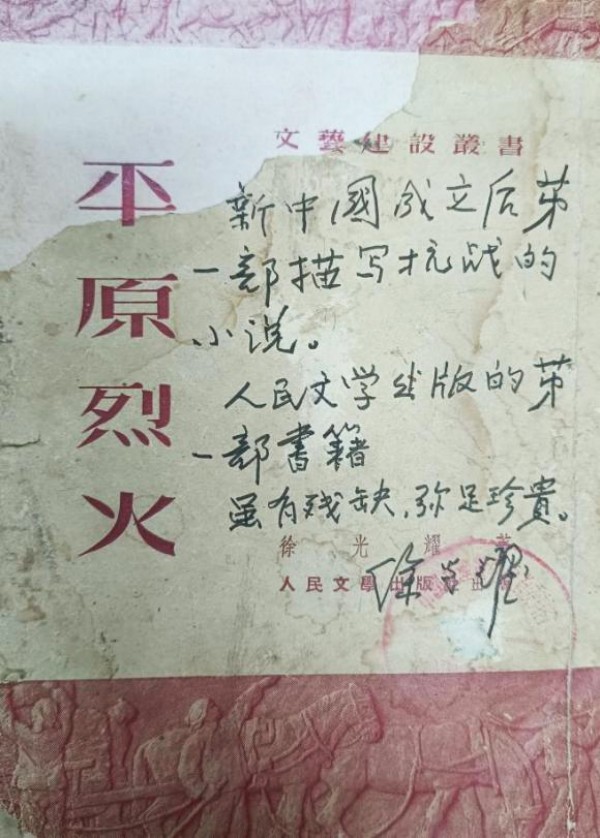 对于这段历史,徐光耀晚年在一本《平原烈火》封面上有过记述: