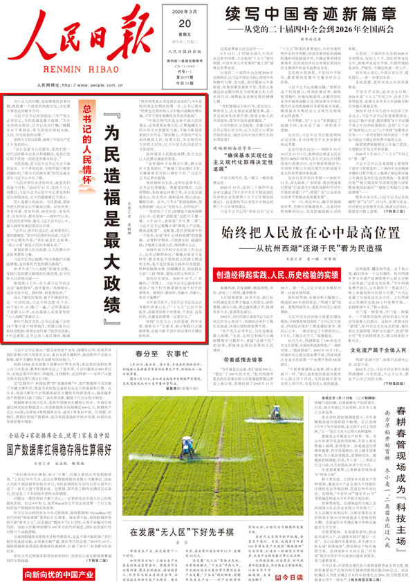 2026年3月20日,《人民日报》头版头条刊发《为民造福是最大政绩》一文。
