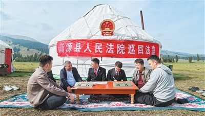 新疆维吾尔自治区伊犁哈萨克自治州新源县那拉提镇地处南北疆交通枢纽,辖域1948平方公里,2.7万农牧民散居于广袤的草原上。新源县人民法院那拉提人民法庭依托巡回审判点等,用马背法庭的“脚步”,将司法服务送到群众家门口,被牧民亲切称作草原上的司法“轻骑兵”。