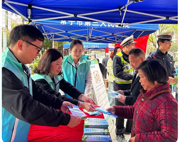 3月23日,湖南省常宁市疾控中心联合市人民医院,泉峰、宜阳、培元街道社区卫生服务中心,组织“百千万”志愿者们在市政府广场开展以“全面行动 全力投入 全民参与 终结结核”为主题的公益宣传活动。
