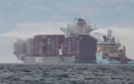 加拿大一艘货轮发生火灾 释放大量有毒气体