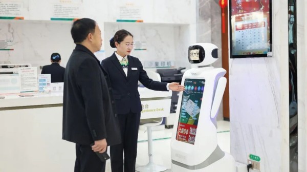 近日,乡宁农商银行营业部迎来了一名“新员工”——智能服务机器人“宁宁”。这位萌态十足、业务娴熟的机器人一上岗,便迅速成为厅堂服务的“新晋明星”,吸引众多客户驻足体验,为传统金融服务注入科技活力与温馨体验。