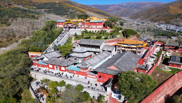 秋雨初霁,云雾渐开。雨后的五台山在阳光下展现出一幅绚丽多彩的秋日画卷。五彩斑斓的秋叶与古朴的建筑相映成趣,肆意铺展的斑斓花色成为游客争相打卡的秋日限定美景。