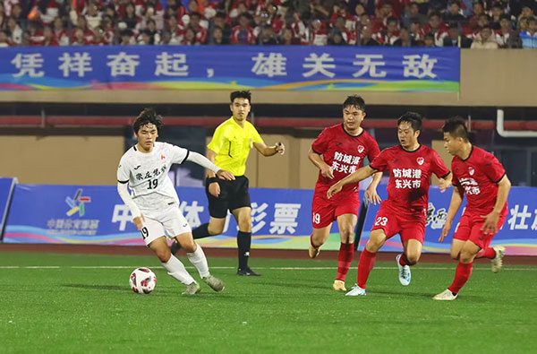 1月17日晚,广西凭祥市文化体育中心足球场灯火璀璨,人声鼎沸。2025-2026年广西县级足球超级联赛桂南赛区第二轮对决在此上演。崇左凭祥市队主场迎战防城港东兴市队,1.1万余名观众在现场见证这场足球盛宴。