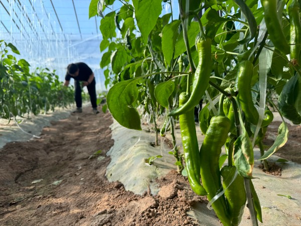 数九寒天,山西省怀仁市金沙滩镇胡寨村的蔬菜大棚里却水汽氤氲,绿意满盈。成排的黄瓜藤蔓青翠欲滴,饱满的西红柿缀满枝头,西葫芦、辣椒长势喜人,村民们正忙着采摘、分拣,准备将这批新鲜蔬菜送往本地市场。