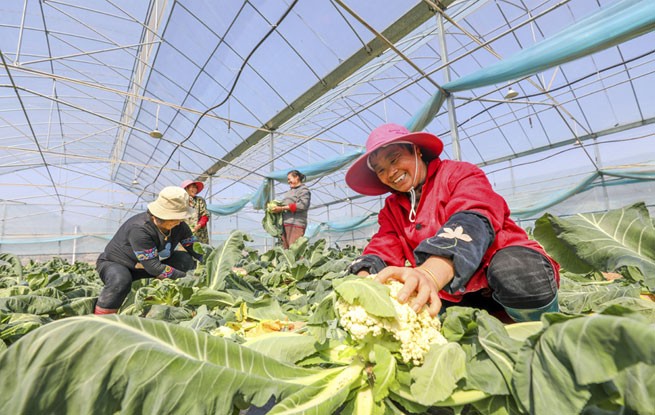 近日,江西省抚州市南丰县洽湾镇长岭村蔬菜大棚基地,村民正在采收西蓝花。近年来,南丰县大力推进“菜篮子”生产能力建设,提高蔬菜生产经营专业化、规模化、标准化水平,构建生产稳定发展、产销衔接顺畅、质量安全可靠的现代蔬菜产业体系,为蔬菜供应提供有力保障,更好地满足城乡居民生活需求。