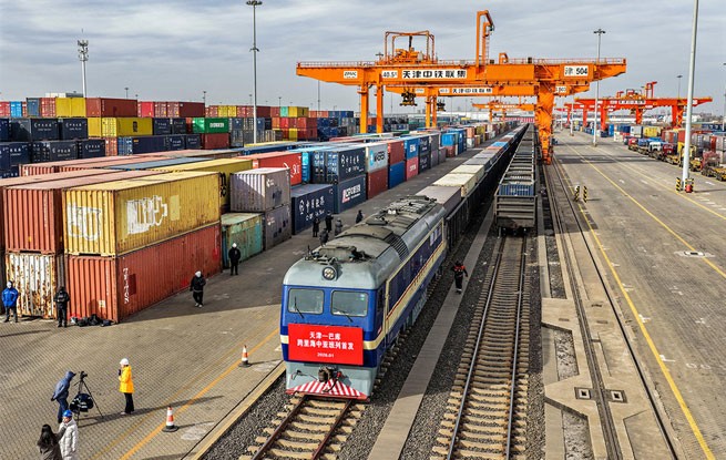 2026年1月19日上午,一列满载不锈钢管材、家电等货物的列车,在嘹亮的汽笛声中从天津集装箱中心站出发。该列车将由霍尔果斯口岸出境至哈萨克斯坦阿克套港,最终经里海海运至阿塞拜疆首都巴库。该趟列车是天津开行的首趟至巴库跨里海中亚班列,为天津至中亚、欧洲增添了稳定快捷的货运新通道。