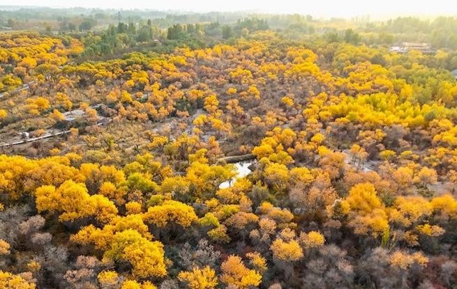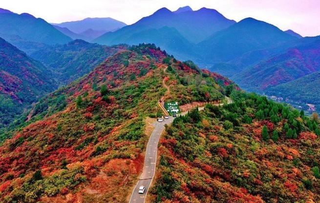 2025年10月21日,山西省运城市平陆县坡底乡马泉沟一带中条山上的10万余亩红叶迎来最佳观赏期。从空中俯瞰,满山红叶层林尽染,山峦沟壑之间,红、黄、橙、绿色彩交织,构成一幅斑斓的生态画卷,吸引众多游客前来观赏。